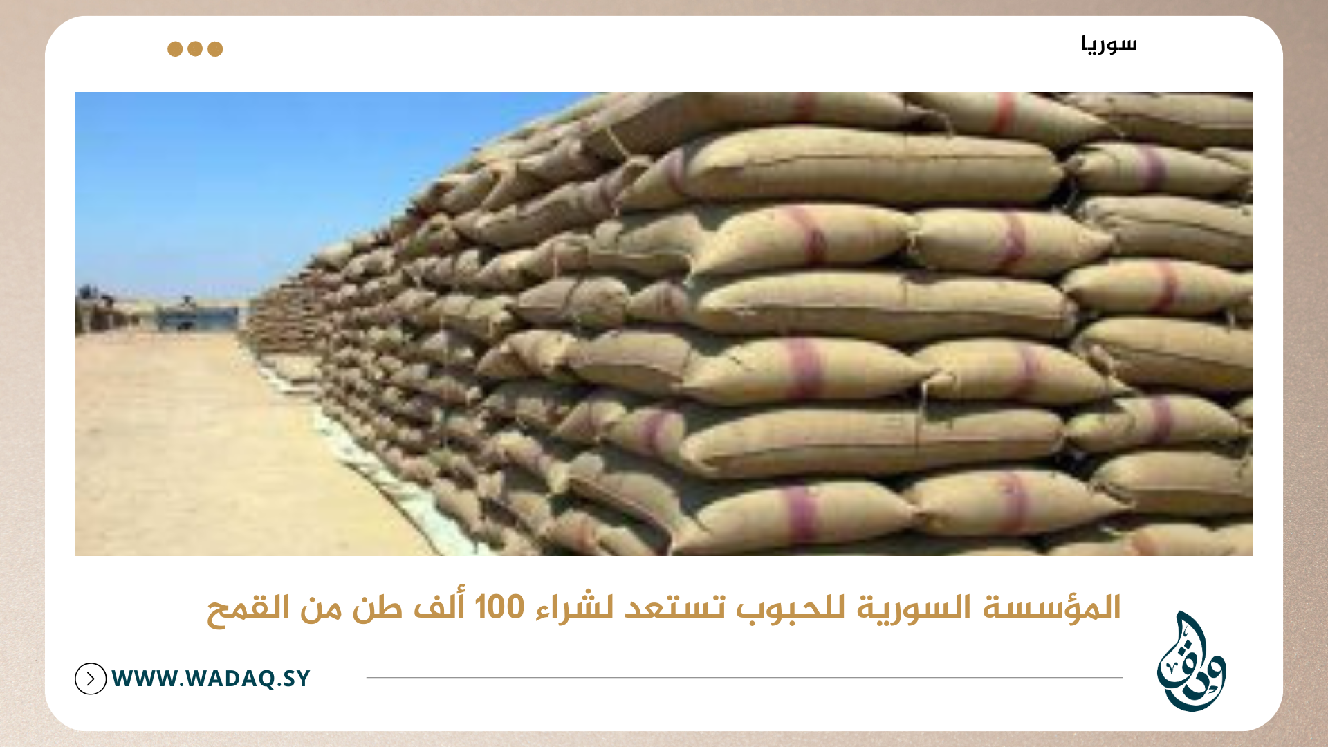 المؤسسة السورية للحبوب تستعد لشراء 100 ألف طن من القمح
