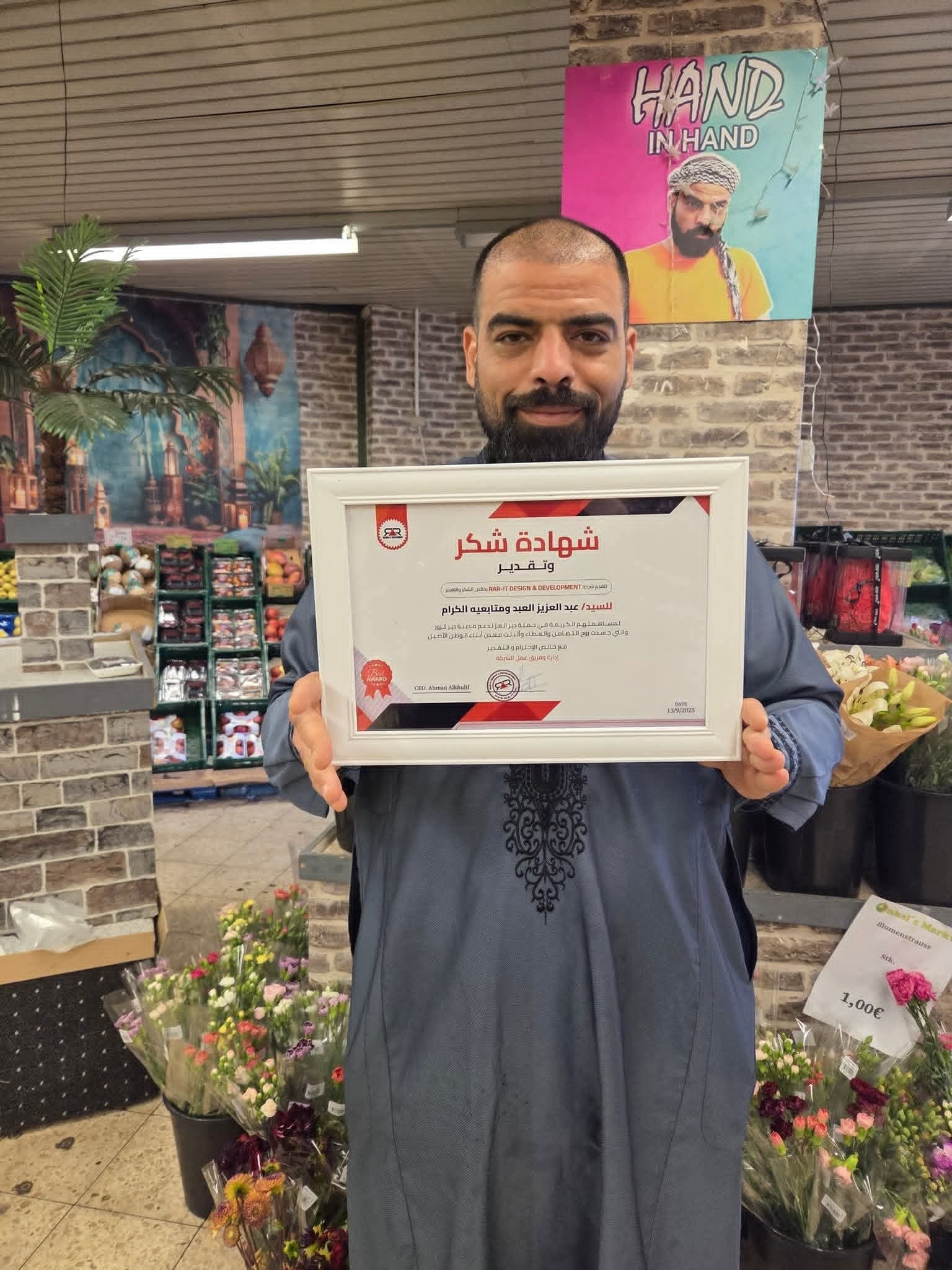 منحت شركة RaR-IT Design & Development LLC شهادة تقدير للشاب السوري عبدالعزيز العبد، وذلك تكريماً لدوره البارز في حملة دير العز التي انطلقت لدعم أبناء دير الزور من الداخل السوري.